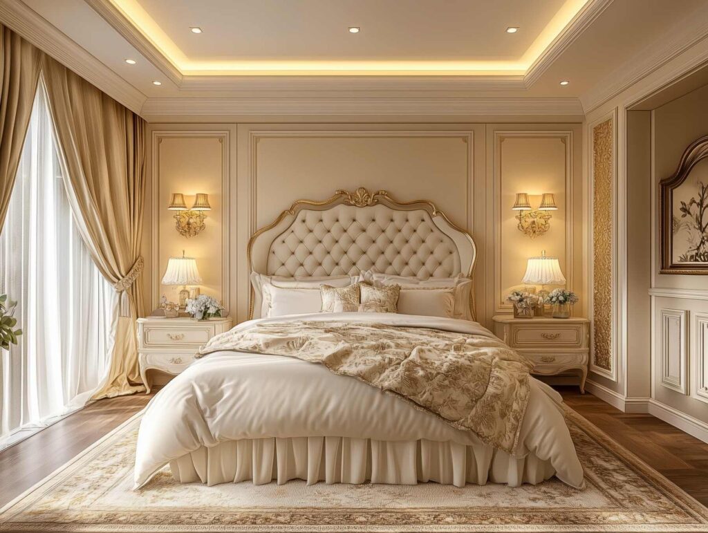 Start with a plush velvet comforter in blush, cream, or dusty lavender. Add decorative pillows with sequins, metallic threading, or faux fur for a layered, luxurious feel. For wall art, choose framed fashion prints, abstract metallic paintings, or mirrors with ornate gold trim.