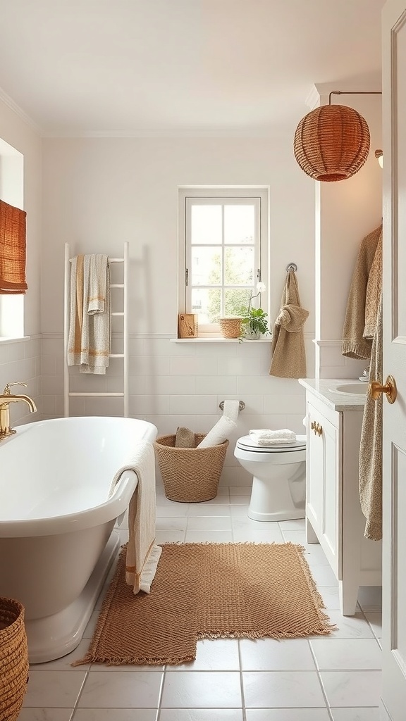 Adding plants enhances this vibe even more. The greenery not only adds life but also purifies the air, making your bathroom feel fresh and inviting. Consider using woven baskets for storage; they add texture and warmth to the overall look.