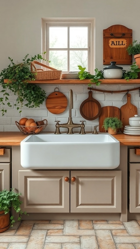 A windowsill herb garden is a charming addition to any country farmhouse kitchen. Imagine waking up to fresh herbs right at your fingertips. This setup not only looks great but also adds a burst of flavor to your meals.