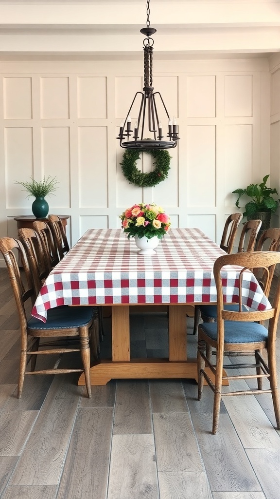 Farmhouse Dining Table with Checkered Tablecloth