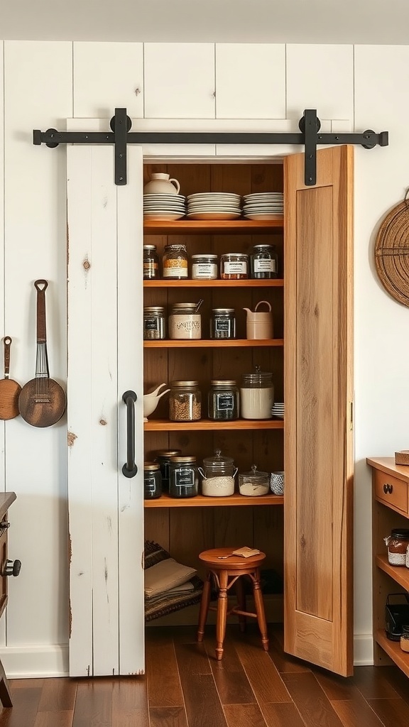 Country Style Pantry with Sliding Barn Door