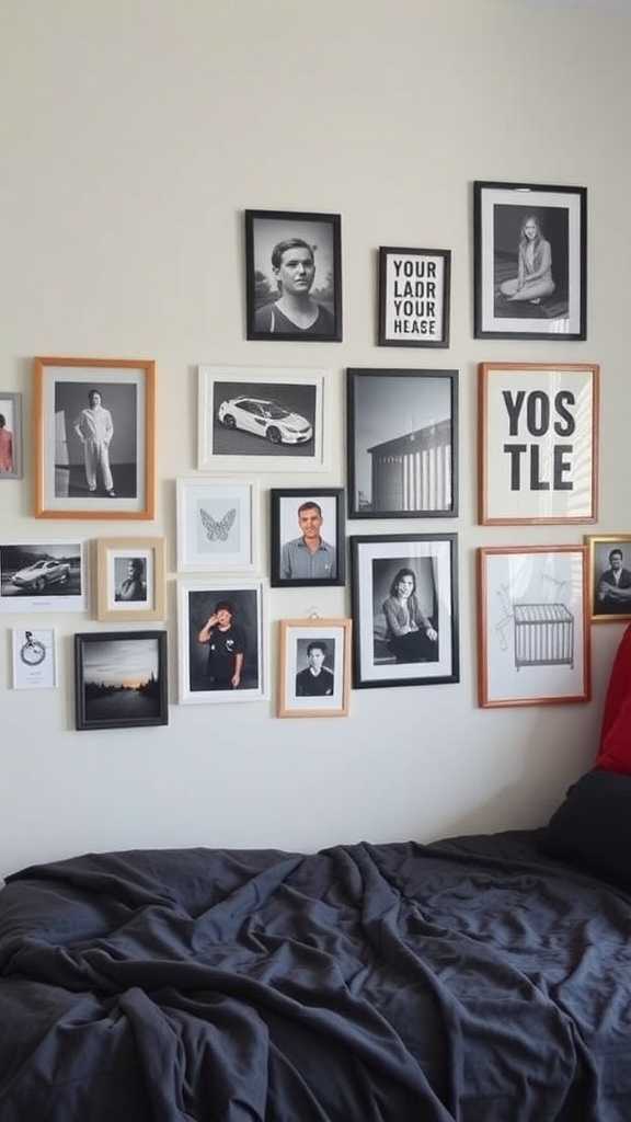 Personalized wall art can truly make your dorm room feel like home. The image showcases a stylish arrangement of framed photos and artwork that adds character to the space. Each frame tells a story, whether it’s a favorite memory, a beloved quote, or a piece of art that resonates with you.