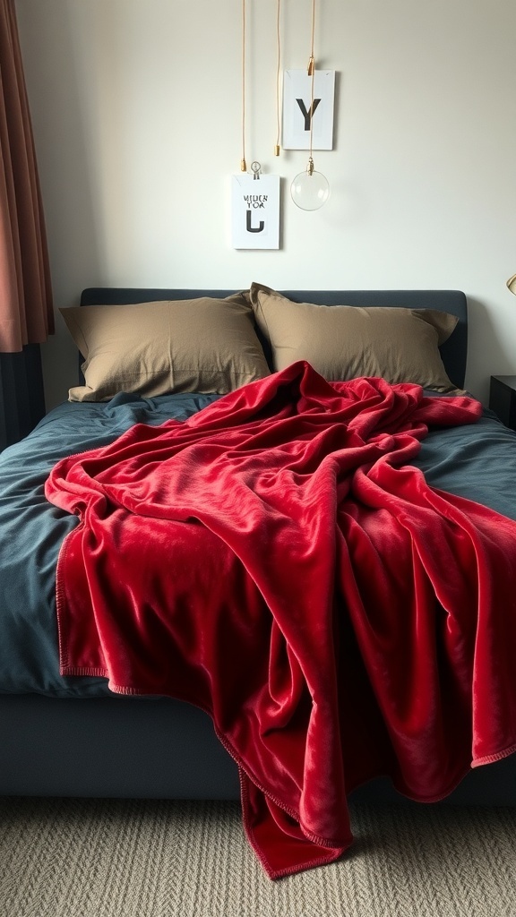 The soft texture of velvet invites you to snuggle in, making it ideal for those chilly nights when you want to feel extra cozy. The vibrant red color adds a pop of personality, making the space feel more alive and inviting.