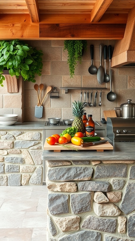 A vertical herb garden is a fantastic way to bring greenery into your outdoor kitchen. This setup not only saves space but also adds a pop of color and life to your cooking area.