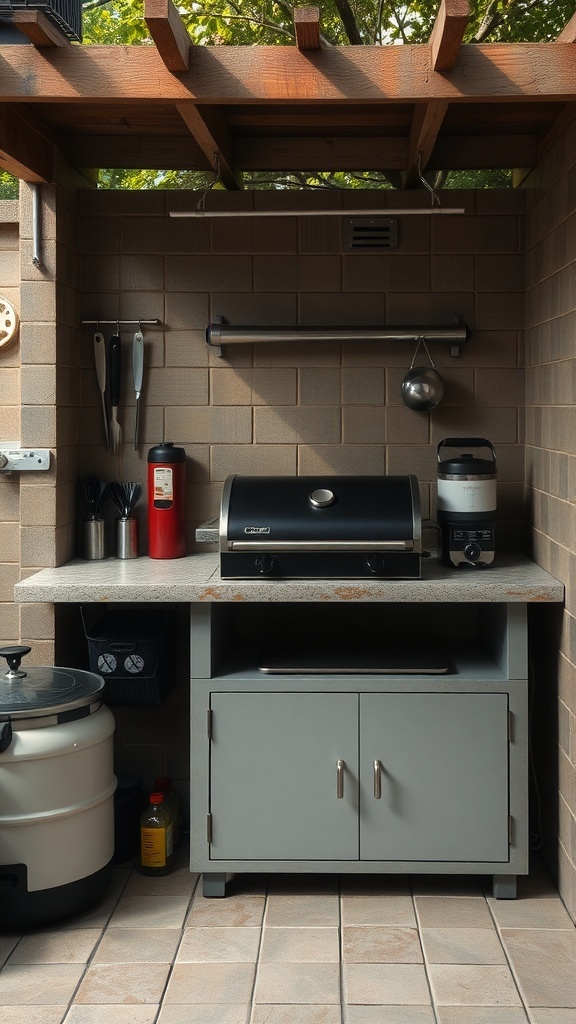 Creating a compact grill station is a fantastic way to enjoy outdoor cooking without taking up too much space. This setup features a sleek grill, perfect for whipping up delicious meals for family and friends. The clean lines and organized layout make it easy to access everything you need.
