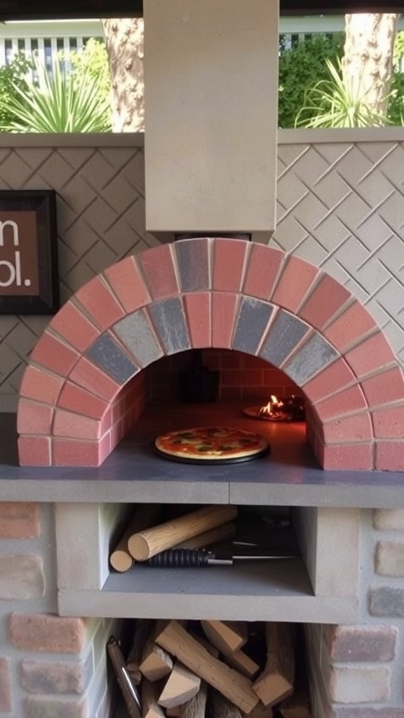 Imagine gathering with friends and family around a wood-fired pizza oven in your backyard. This setup not only looks great but also adds a fun cooking experience. The oven, made of brick, has a charming arch that invites you to create delicious pizzas.