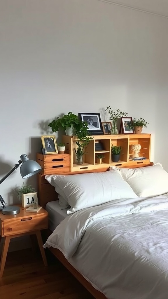 In the image, you can see a headboard made from wooden crates that doubles as storage. This is perfect for dorm life, where space is often limited. You can display plants, photos, or even books right above your bed, keeping everything within reach while adding a personal touch to your room.