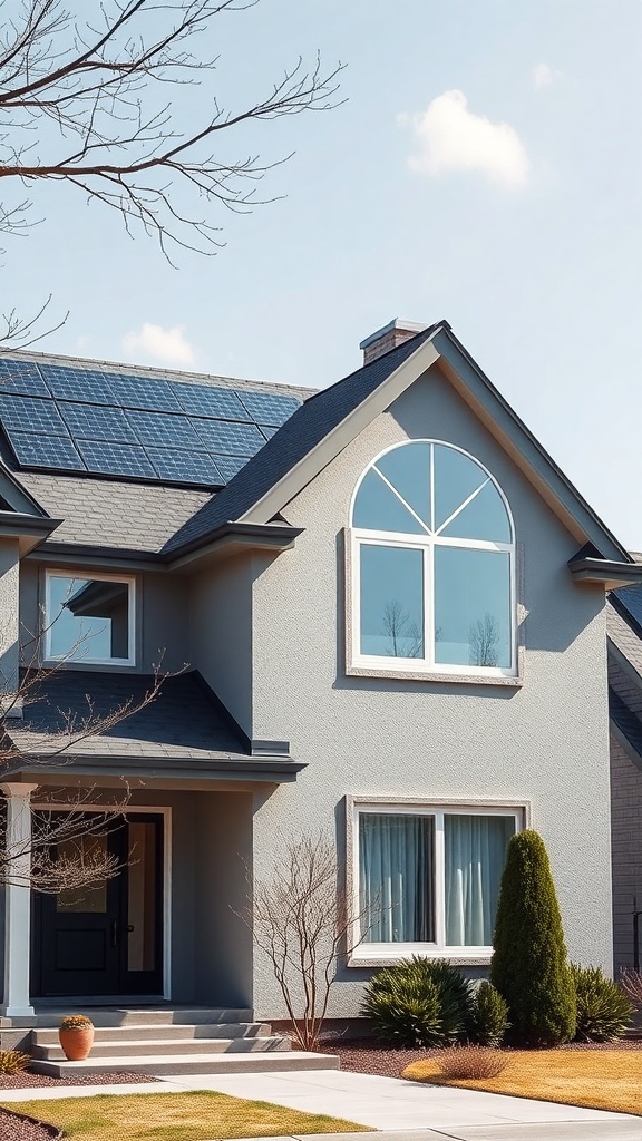 One great feature in this design is the solar panels on the roof. They harness sunlight to generate energy, making the home more sustainable. This is a smart choice for anyone looking to reduce energy bills and their carbon footprint.