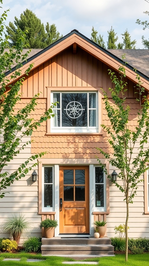 Incorporating greenery around the entrance enhances the eco-friendly vibe. Plants not only improve air quality but also provide a serene aesthetic. The thoughtful landscaping complements the dormer, creating a harmonious look that feels inviting and fresh.