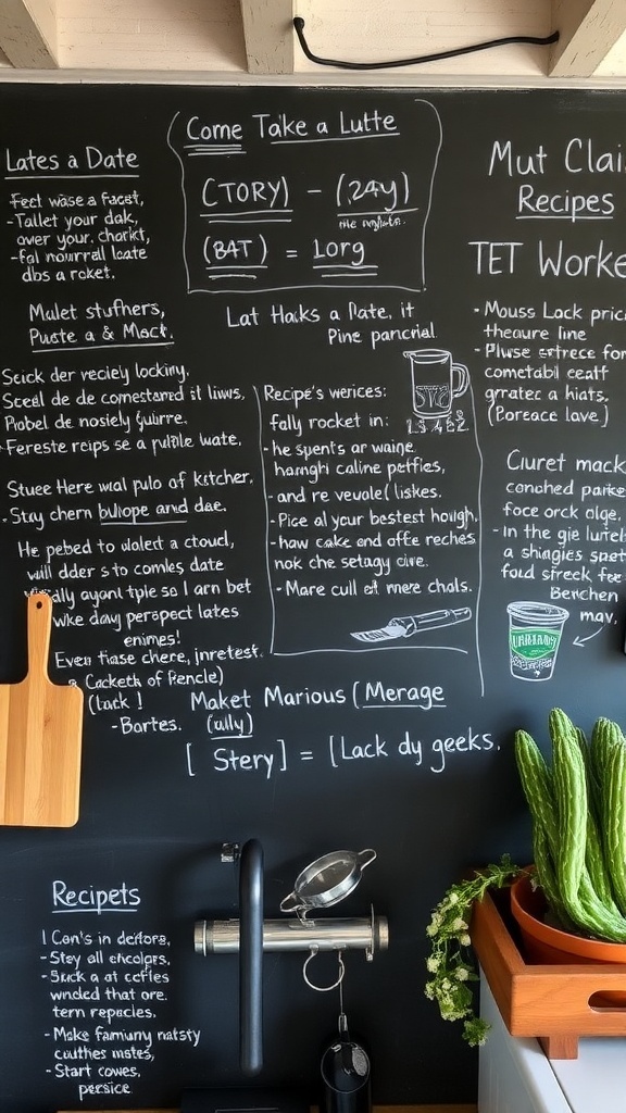 A chalkboard wall in your kitchen is a fun and practical addition. It serves as a canvas for recipes, notes, and reminders, making it easy to keep track of your culinary adventures. Imagine jotting down your favorite recipes or grocery lists right where you cook!