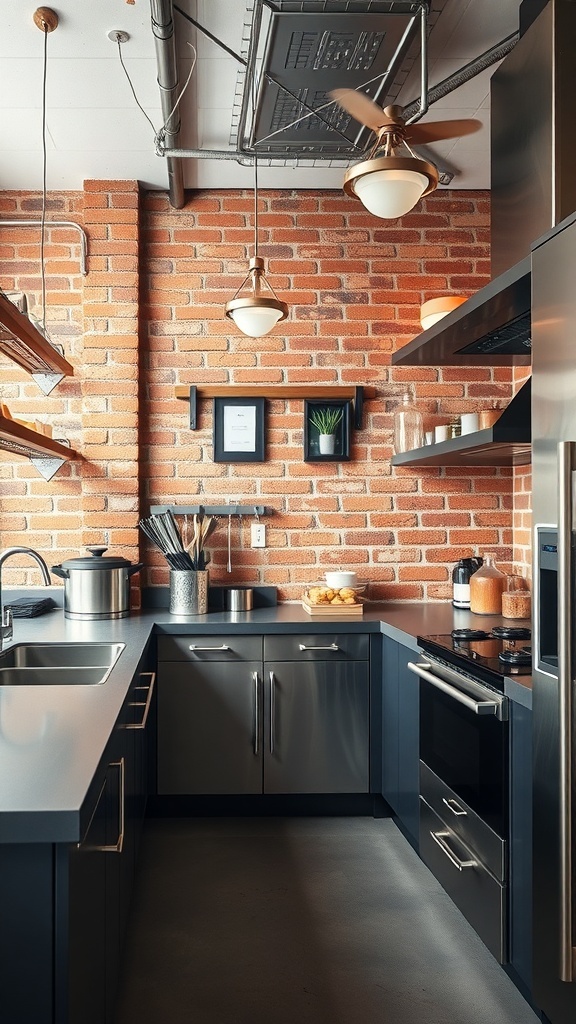Exposed brick walls bring a unique charm to industrial kitchens. They add warmth and texture, creating a cozy yet modern vibe. The rich tones of the brick contrast beautifully with sleek appliances and cabinetry.