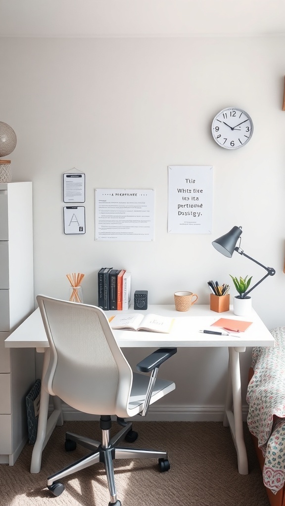 Don’t forget about the desk area! A tidy workspace with a few decorative items, like a small plant, can make studying more enjoyable. Personal touches, like a favorite mug or a unique clock, can bring a sense of home to your study space.