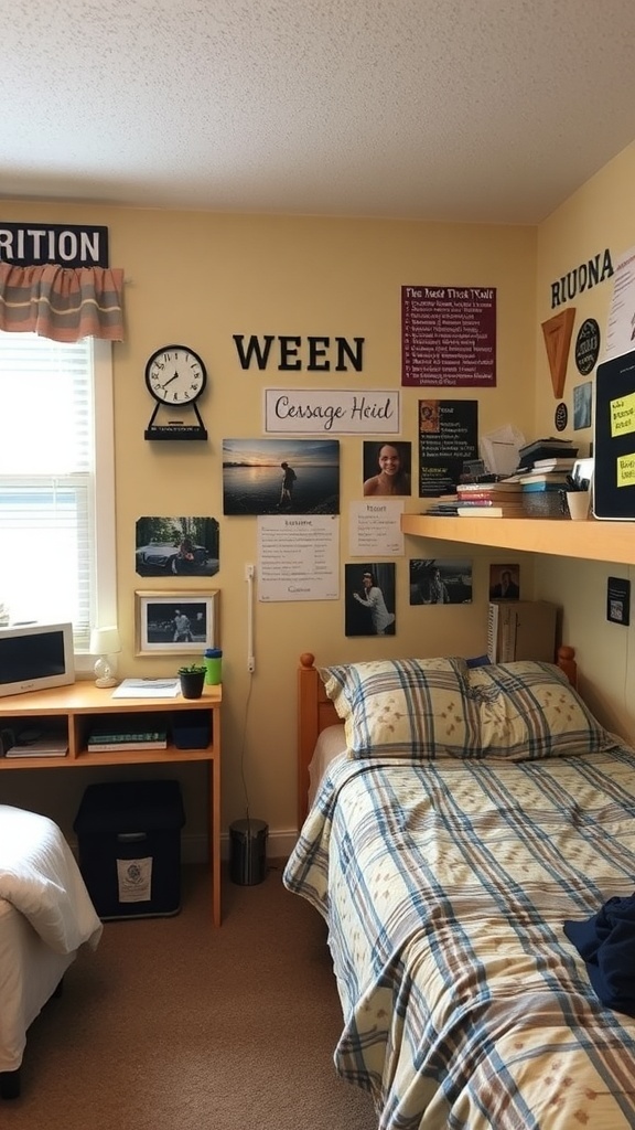 Personalizing your dorm room can make a big difference in how cozy and inviting it feels. The image shows a well-decorated space that reflects the personality of its occupant. From the wall art to the bedding, every detail tells a story.