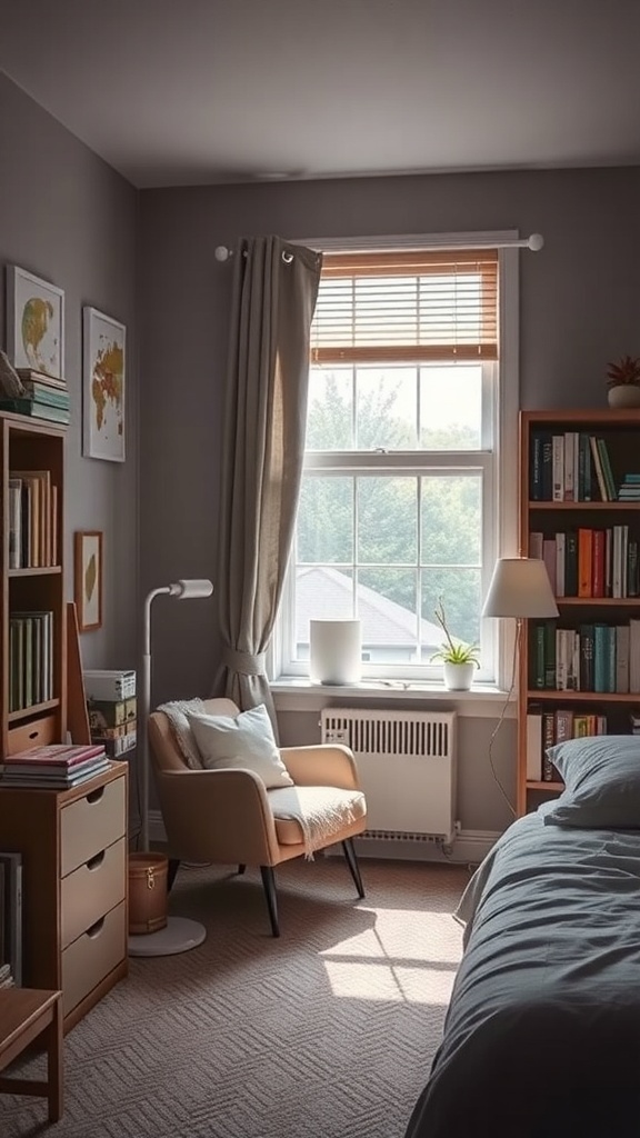 A cozy reading nook can transform any dorm room into a personal retreat. Imagine a comfortable chair positioned near a window, inviting you to curl up with a good book. The soft light filtering through the blinds creates a warm atmosphere, perfect for losing yourself in stories.