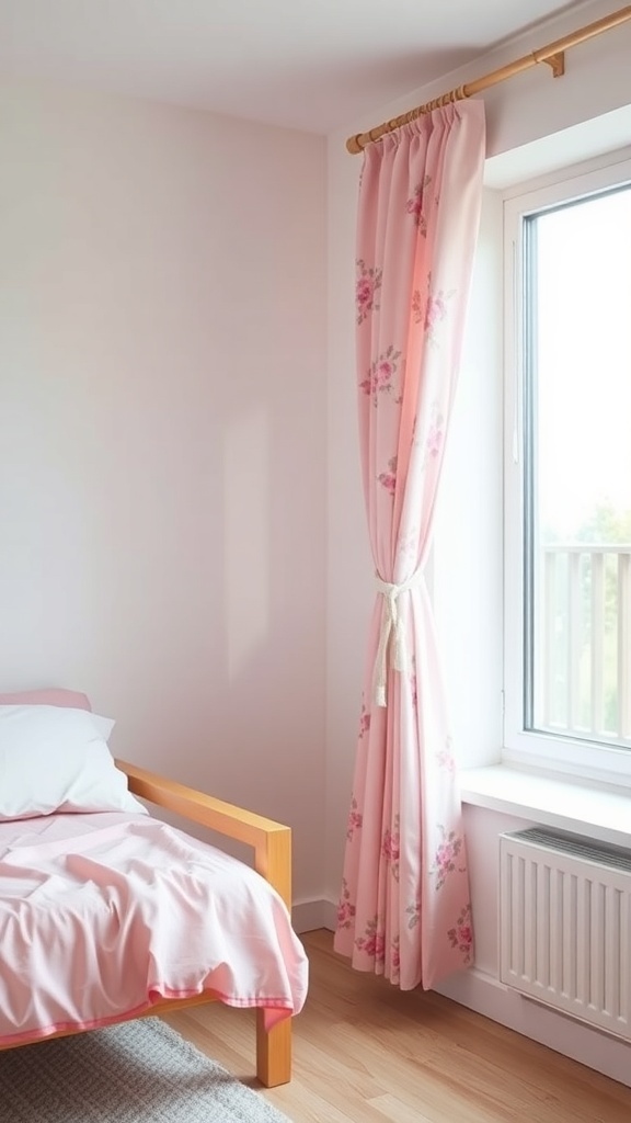 In this image, the curtains are a soft pink with charming floral designs. They frame the window beautifully, allowing natural light to filter through while still providing some privacy. This balance is perfect for a dorm room, where you want to enjoy the sunlight without feeling exposed.