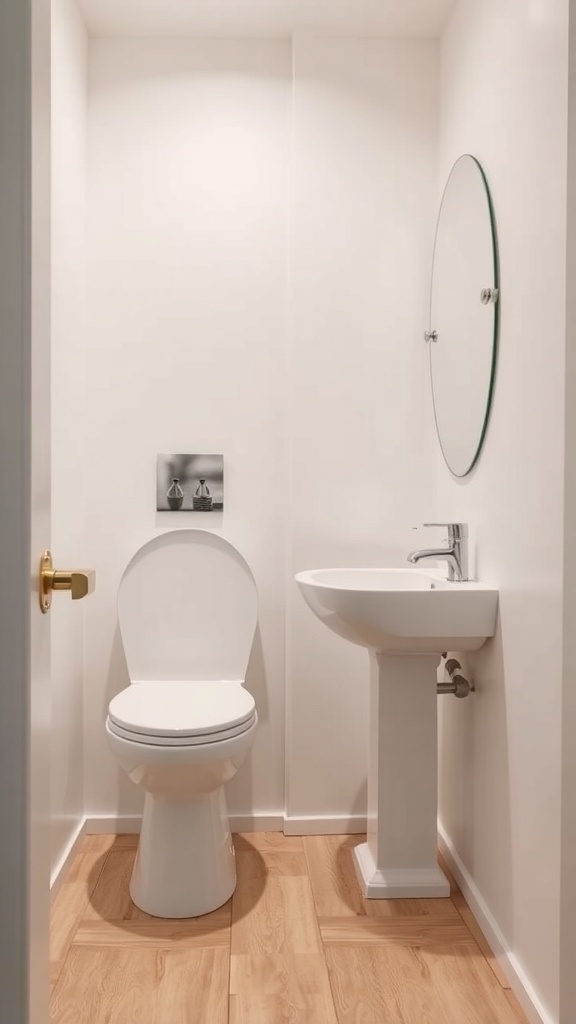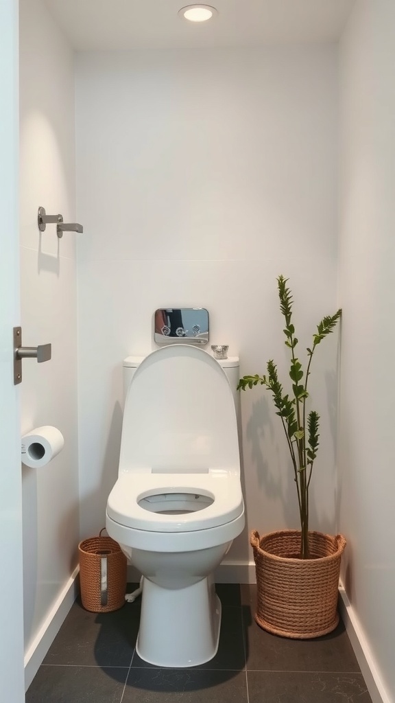 A minimalist design can transform a tiny downstairs toilet into a serene space. The image showcases a clean and simple layout, emphasizing the beauty of less. The white walls and sleek toilet create an open feel, making the room appear larger than it is.