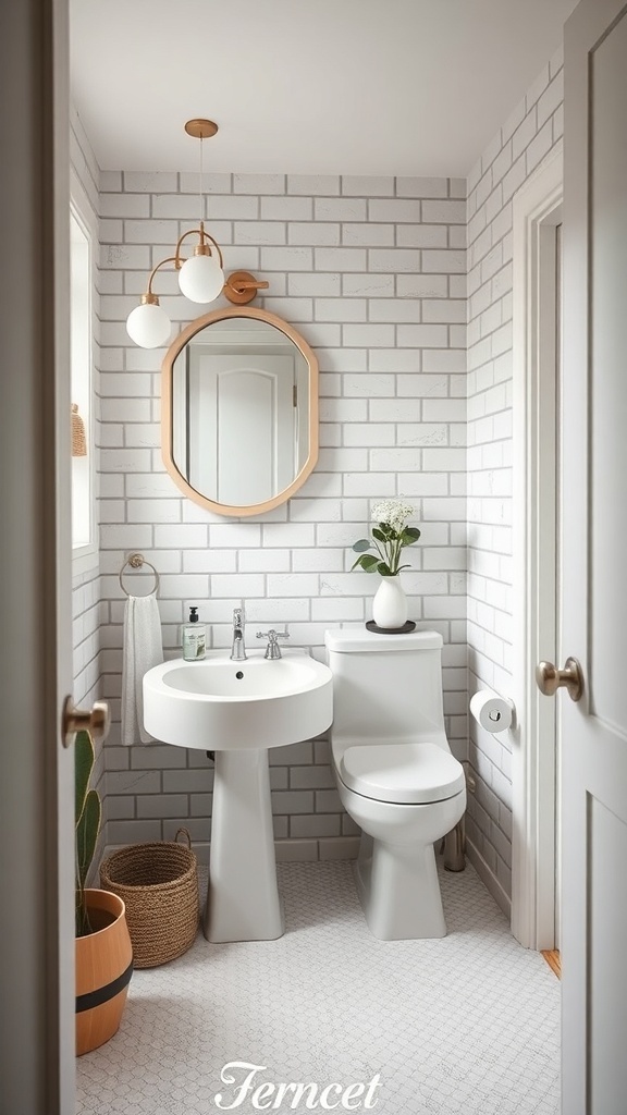 Mirrors can be a fantastic addition to tiny downstairs toilets. They create an illusion of depth and make the space feel larger than it is. In the image, the rounded mirror above the sink reflects light and adds a touch of style.
