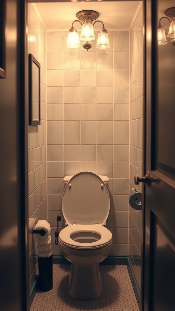 When it comes to tiny downstairs toilets, lighting plays a key role in creating a welcoming space. The image showcases a well-lit toilet area that balances functionality with style. The soft glow from the light fixtures adds warmth, making the small space feel inviting.